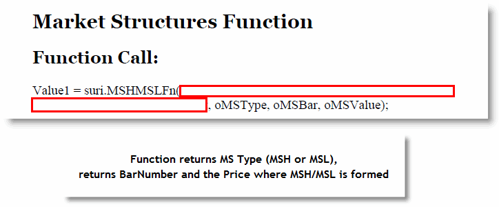 Market Structures Function: Market Structures Function finds the MSH/MSLs and presents the information to developers/traders. MSFn can be only released to the Market Structures Indicator/RadarScreen License holders.