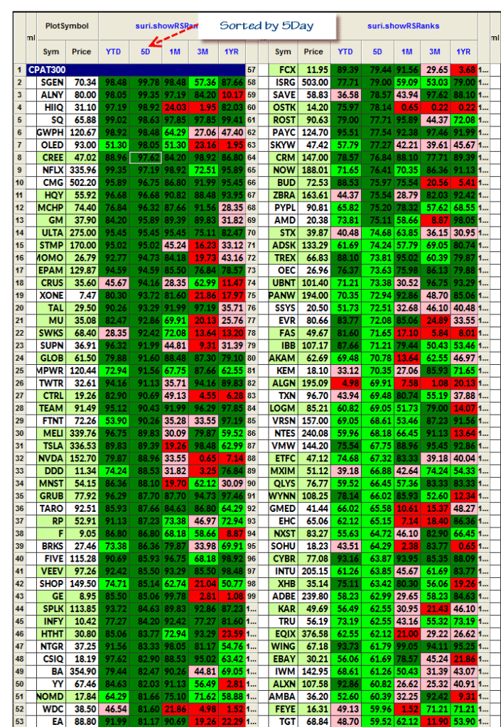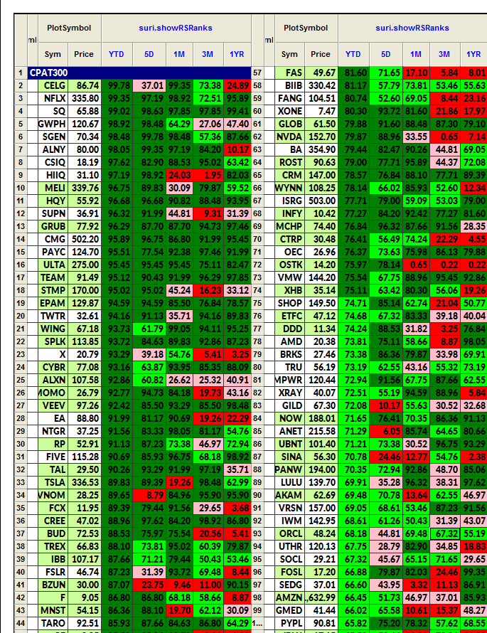 - Relative Strength Ranks for a Group of Stocks/Equities